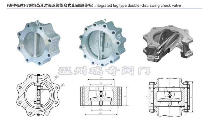 凸耳對(duì)夾式止回閥,溫州瑞奇的H76型美標(biāo)凸耳對(duì)夾旋啟式止回閥適用于各種管路上,用于防止介質(zhì)倒流。通過(guò)選用不同材質(zhì),適用于,水,蒸汽,油品,酸類強(qiáng)氧化性介質(zhì)及尿素等多種介質(zhì)。